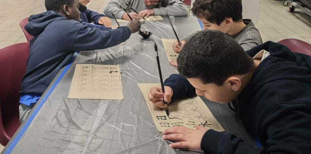 ✍ S’initier à l’écriture de caractères traditionnels, avec attention à la respiration, à la posture et à l’équilibre du trait