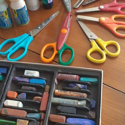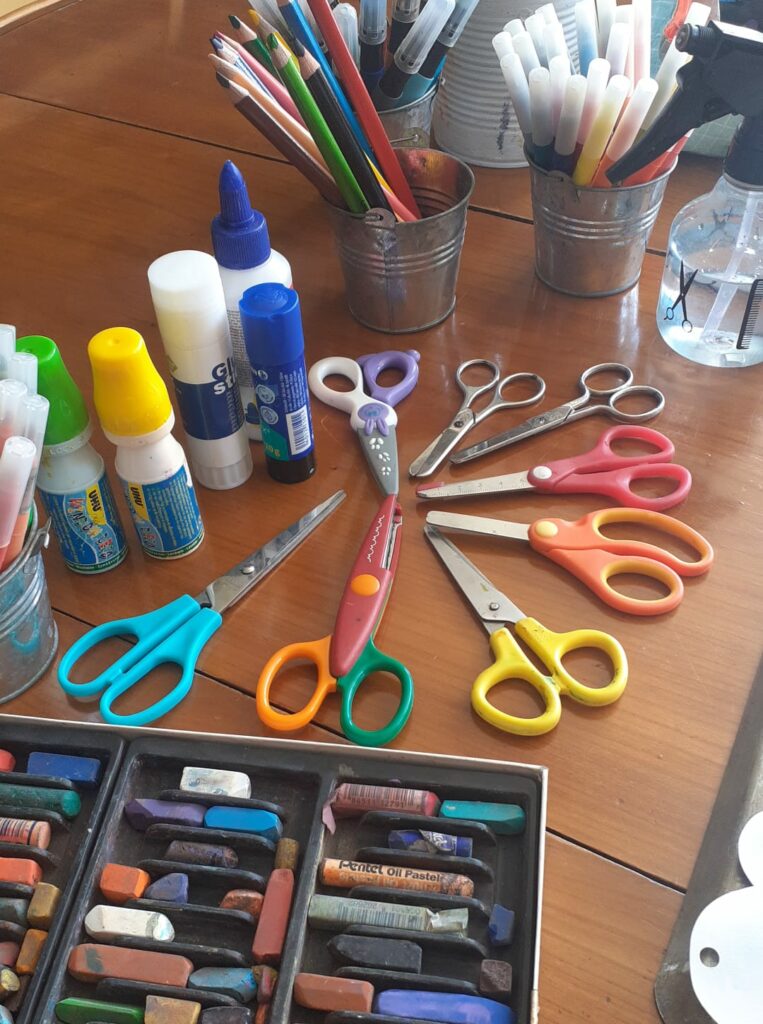 ✔️ Colles, ciseaux, outils de grattage et de tamponnage pour jouer avec les effets