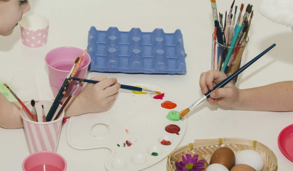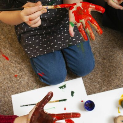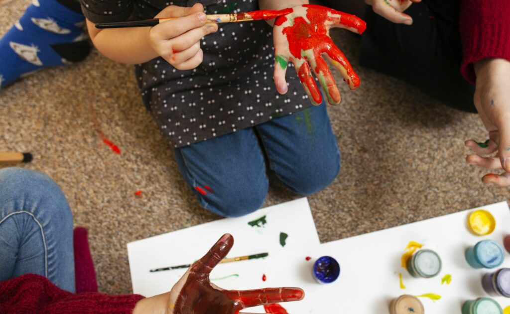 🔹 Expérimenter les gestes : Peins avec une éponge, applique la couleur au doigt, tamponne, gratte, superpose… chaque geste apporte une nouvelle dimension