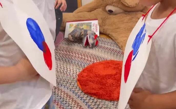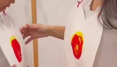 🔸 Au programme : chaque duo recevra un joli cœur en carton accroché autour du cou, à peindre avec des tâches de couleur à mélanger en se faisant des câlins… un vrai moment de tendresse et de rigolade !