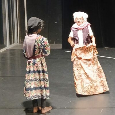 Autour du récit L’Ogre Babborco de Muriel Bloch, les enfants découvrent le théâtre en jouant, en riant et en s’inventant des personnages.