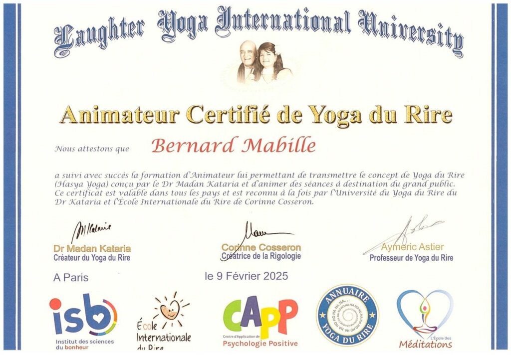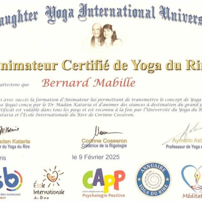 Atelier animé par Bernard, animateur certifié en Yoga du Rire et semeur de sourires.